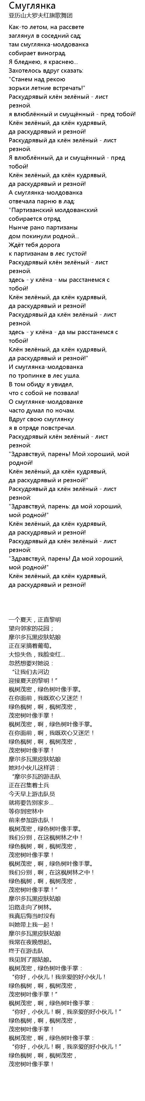 | 歌曲 | Смуглянка |