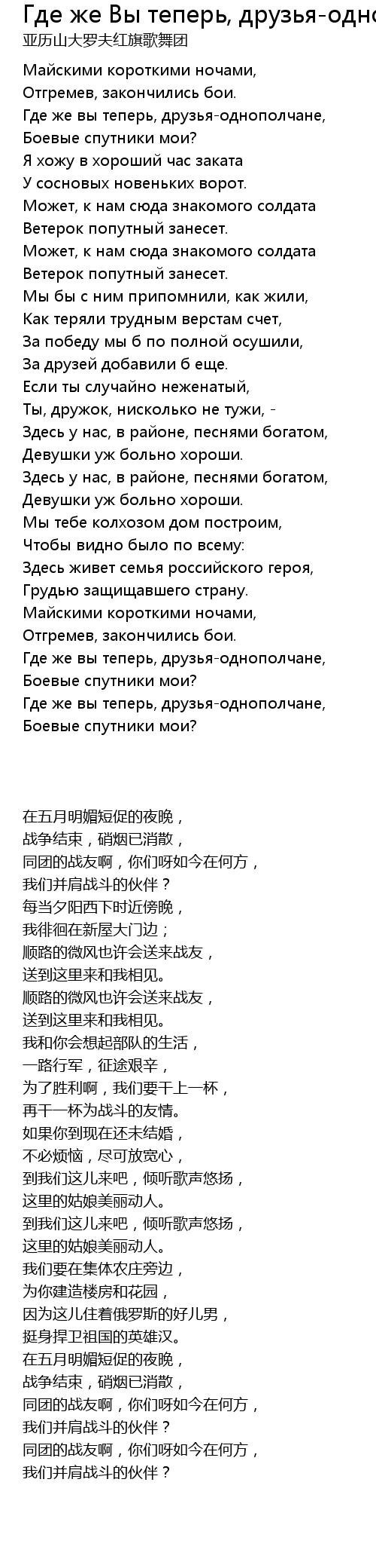 | 歌曲 | Где же Вы теперь, друзья-однополчане |
