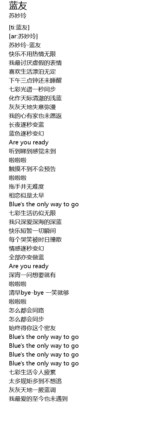 | [02:03.431] | quán bù yì biàn zuò lán |