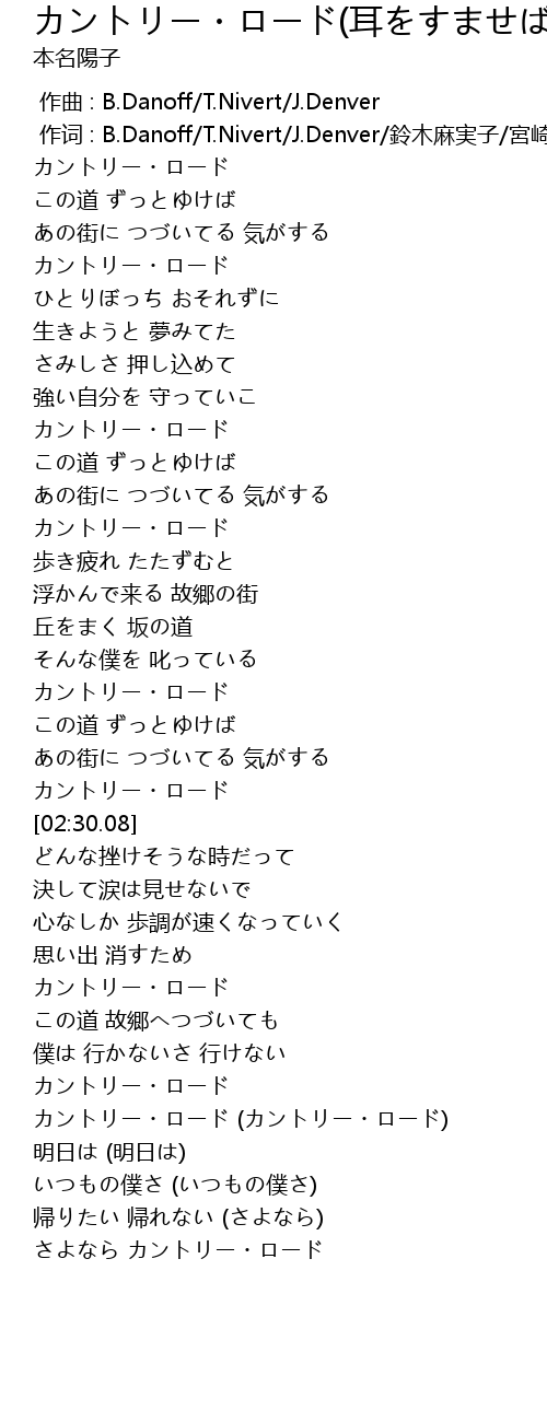 | [03:45.12] | カントリー・ロード (カントリー・ロード) |