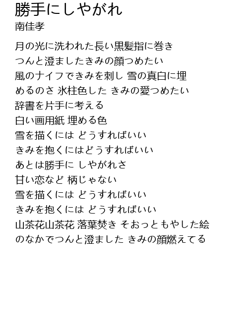 | めるのさ 氷柱色した きみの愛つめたい | |