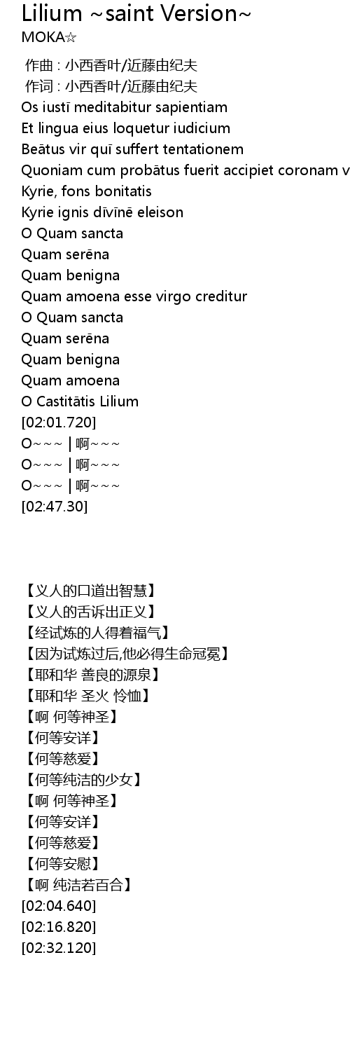 | [01:55.710] | 【啊 纯洁若百合】 |
