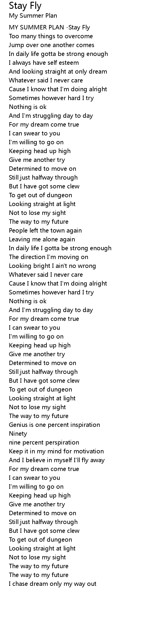 [00:00.126] MY SUMMER PLAN -Stay Fly