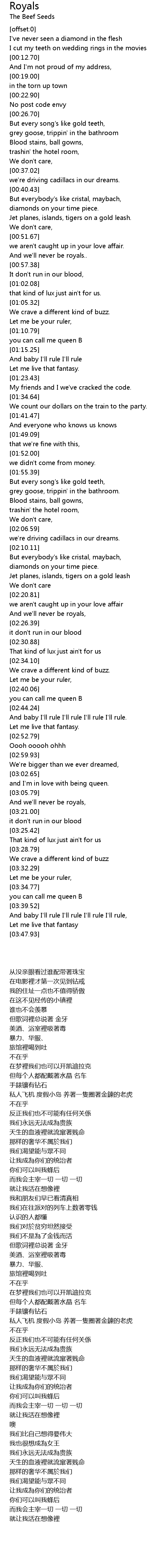 And we'll never be royals, |