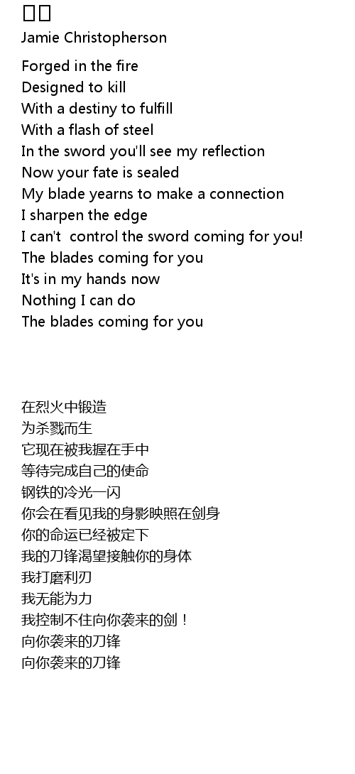 | [01:21] | 我的刀锋渴望接触你的身体 |