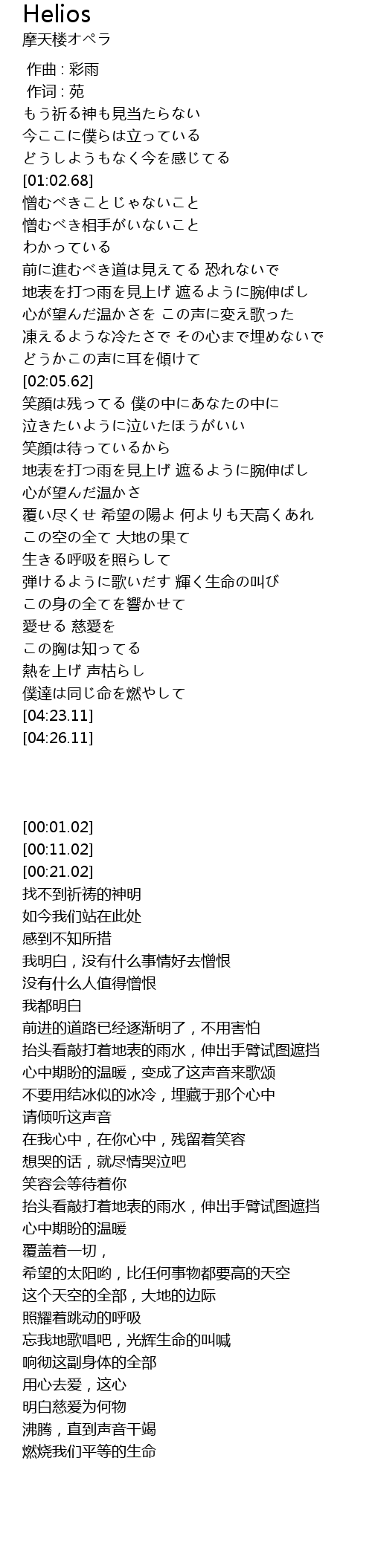 | [03:30.02] | 覆盖着一切, 希望的太阳哟,比任何事物都要高的天空 |