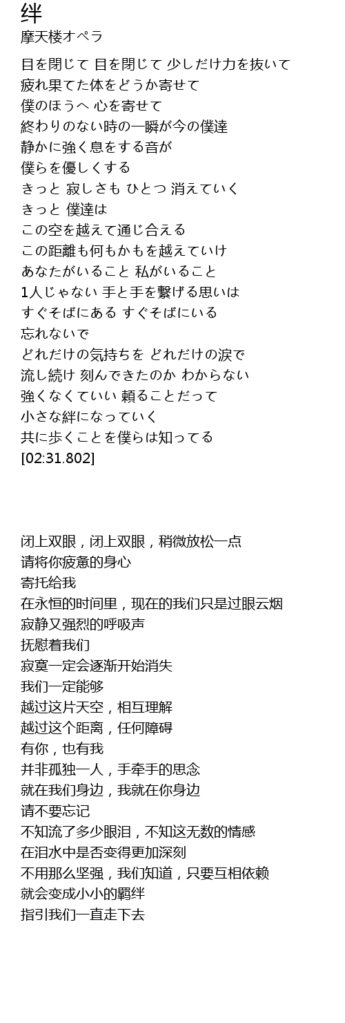 | [00:01.322] | 目を閉じて 目を閉じて 少しだけ力を抜いて |
