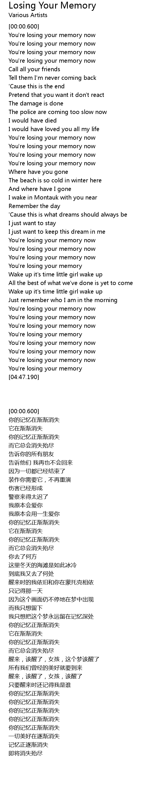 You're losing your memory now |