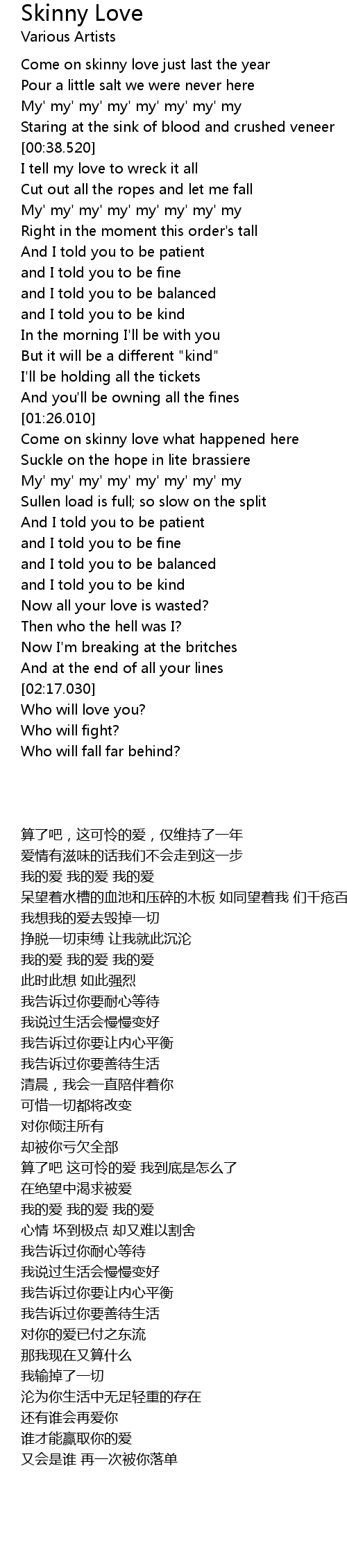 [00:15.510] Come on skinny love just last the year