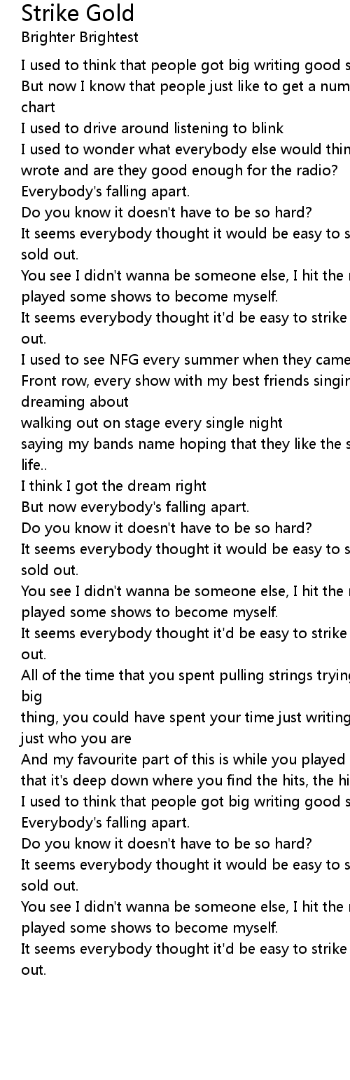 It seems everybody thought it'd be easy to strike gold, but you sold out. |