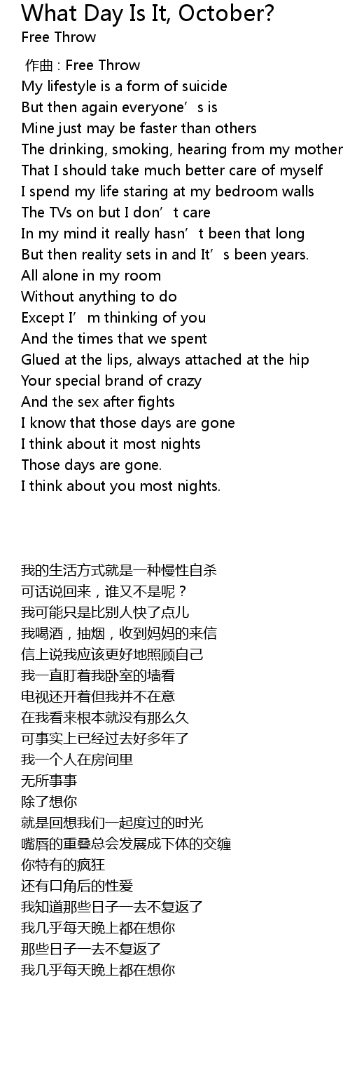 | 歌曲 | What Day Is It, October? |