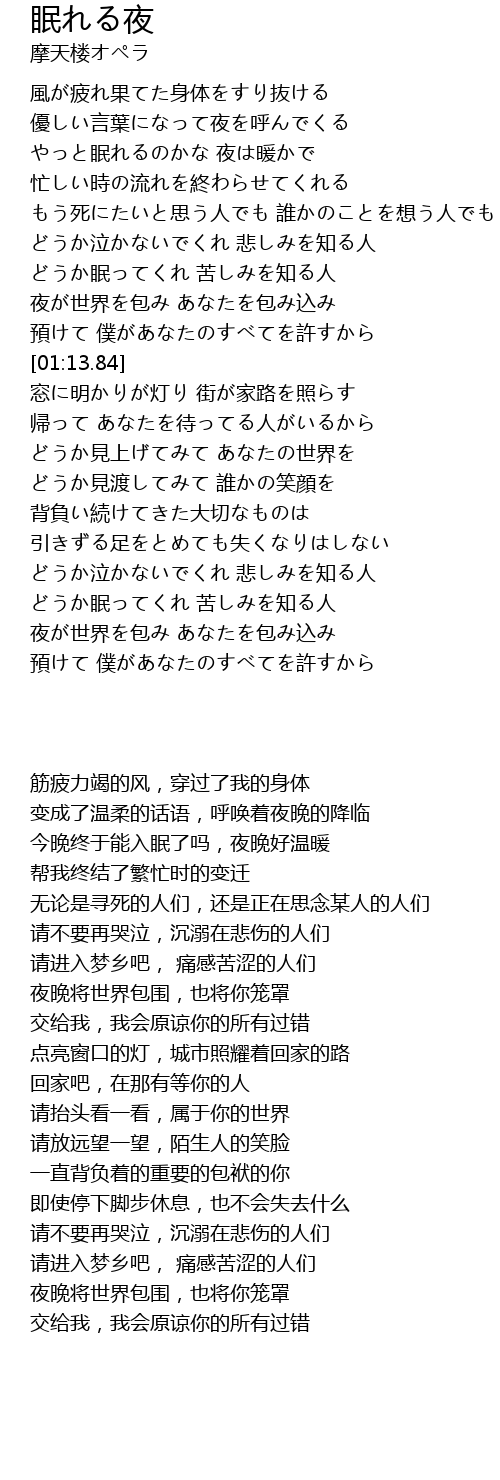 | [00:50.57] | 请进入梦乡吧, 痛感苦涩的人们 |