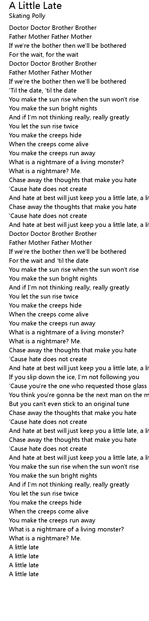 And hate at best will just keep you a little late, a little late |