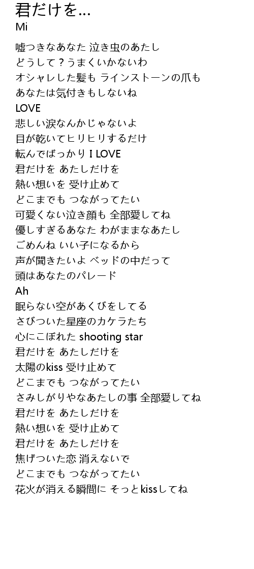 | [02:43.07] | さみしがりやなあたしの事 全部愛してね |