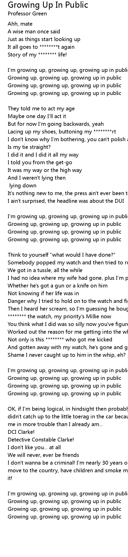 I'm growing up, growing up, growing up in public |