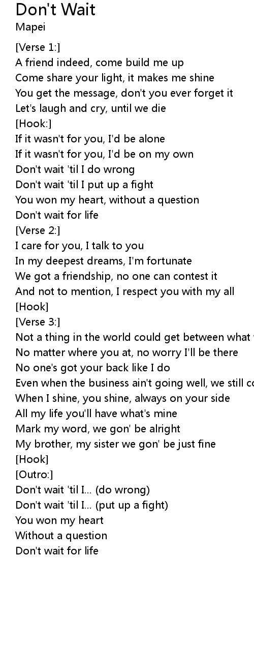 | Don't wait 'til I... (put up a fight) | |