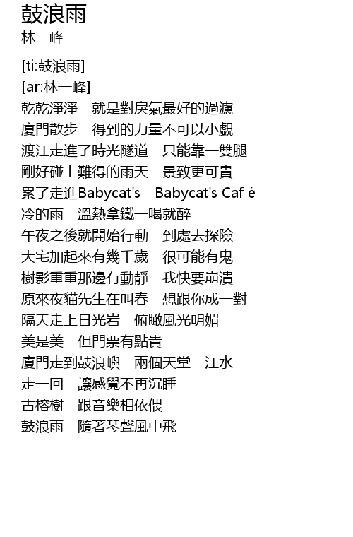 | [02:50.228] | 鼓浪雨 隨著琴聲風中飛 |