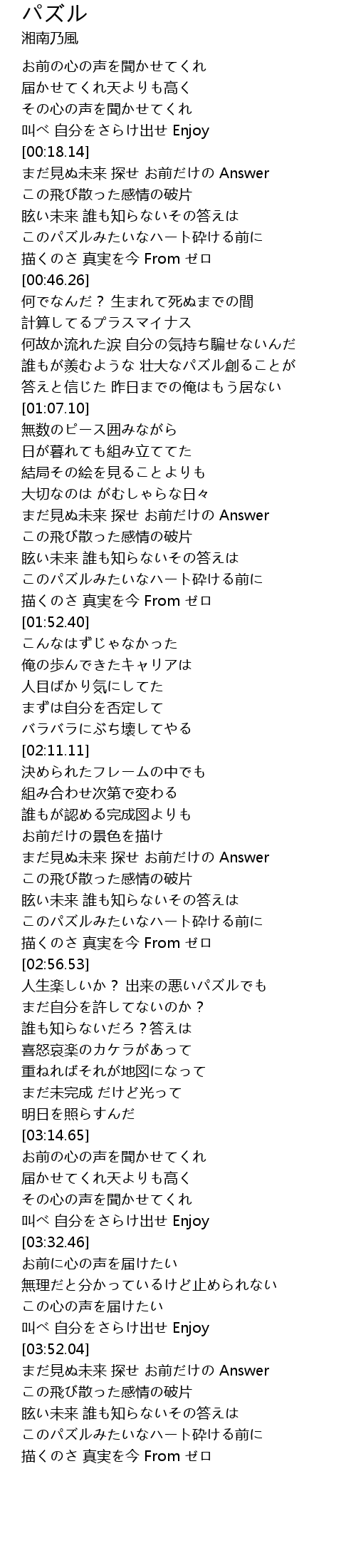 | [02:57.35] | 人生楽しいか? 出来の悪いパズルでも |