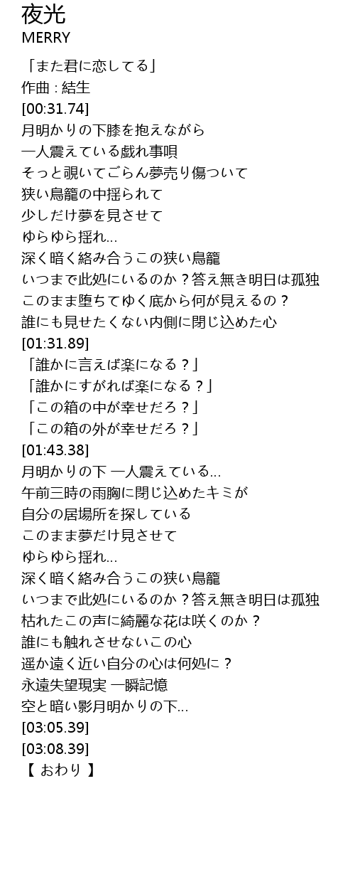 | [03:02.95] | 空と暗い影月明かりの下… |