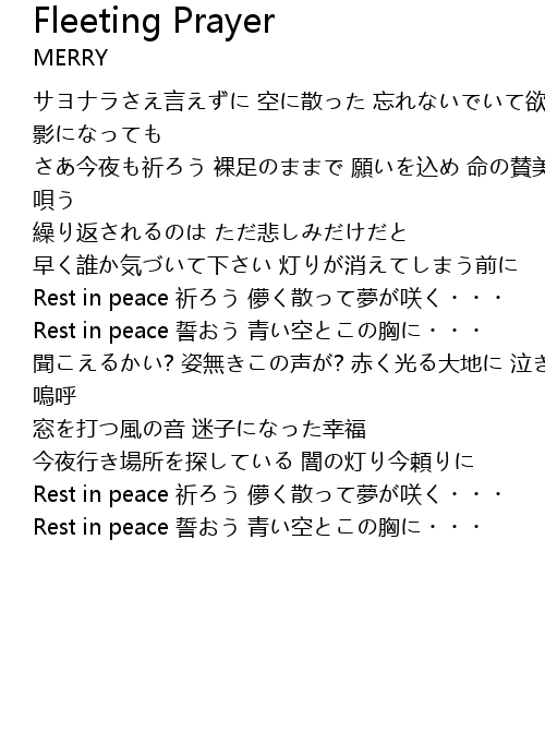 | Rest in peace 祈ろう 儚く散って夢が咲く・・・ | |