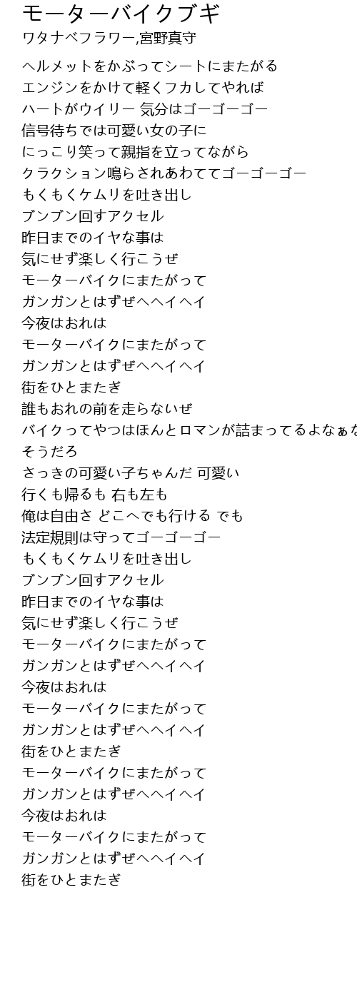 | [03:01.23] | モーターバイクにまたがって |