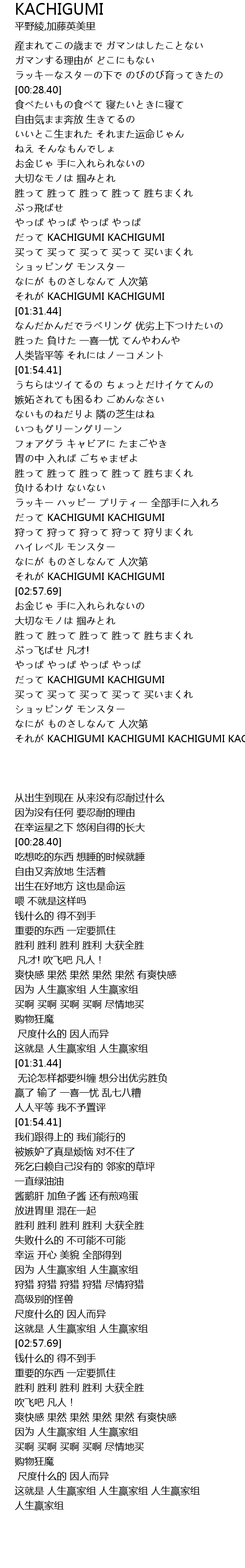 | [03:57.80] | KACHIGUMI KACHIGUMI KACHIGUMI KACHIGUMI |