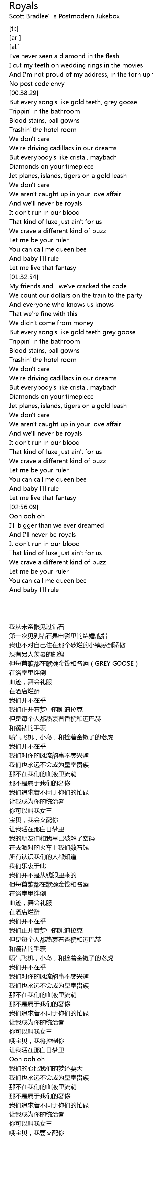 And I'll never be royals |