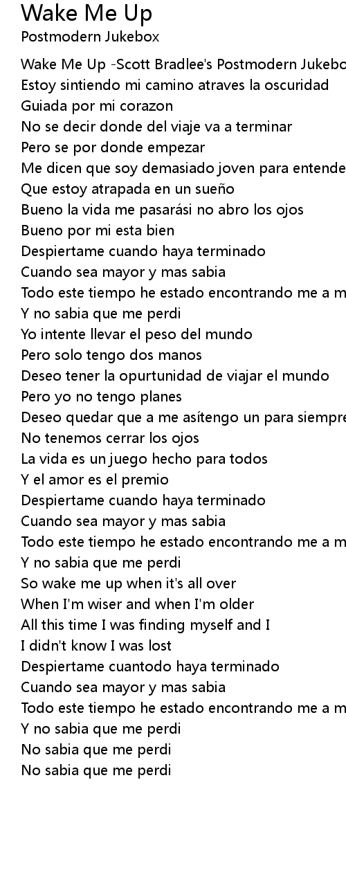 | [00:00.00] | Wake Me Up Scott Bradlee' s Postmodern Jukebox |