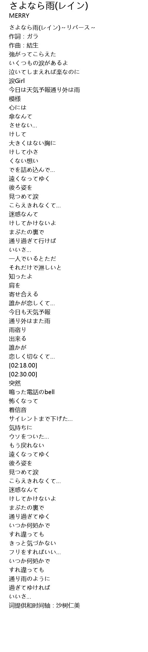 | [00:00.00] | さよなら雨(レイン)~リバース~ |