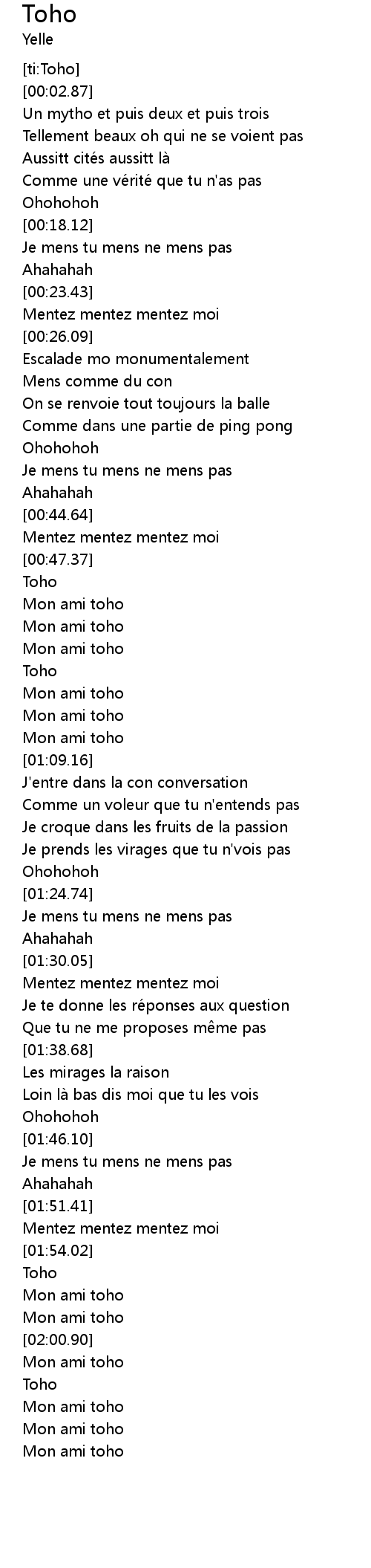 | [00:39.94] | Je mens tu mens ne mens pas |