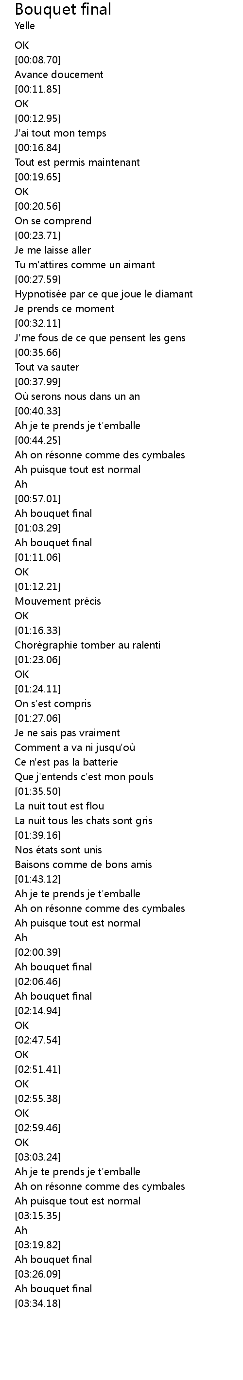 | [03:07.92] | Ah on ré sonne comme des cymbales |