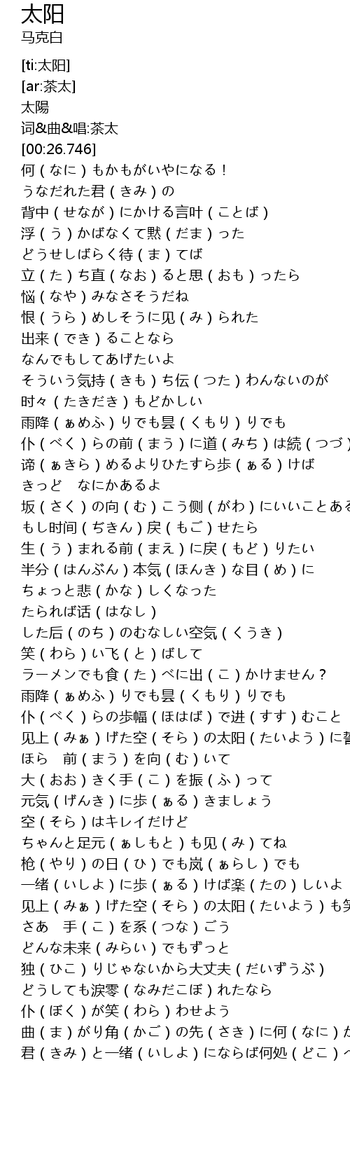 | [03:36.38] | jiàn shàng kōng tài yáng xiào |
