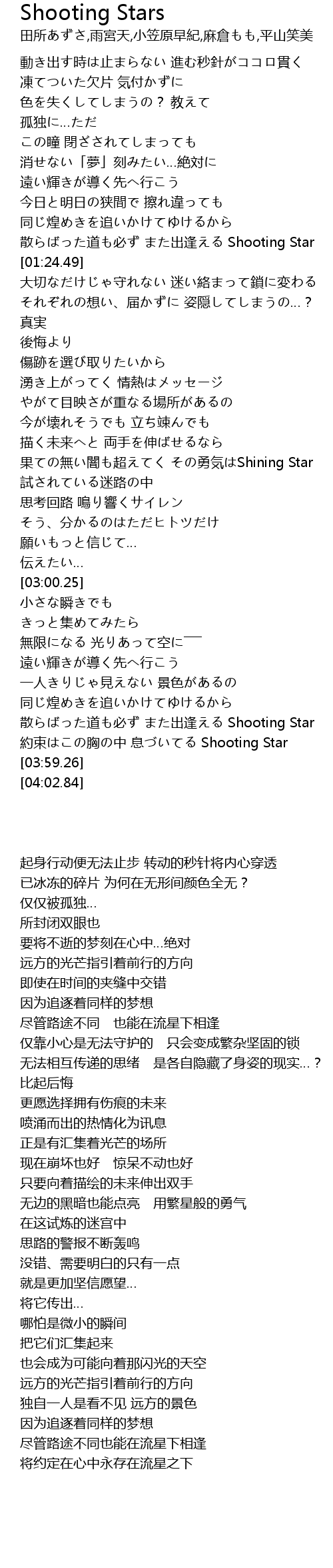 | [03:45.82] | 散らばった道も必ず また出逢える Shooting Star |