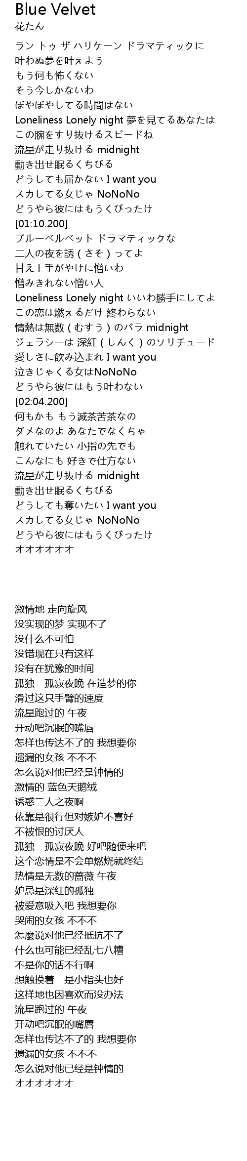 | [01:13.900] | 激情的 蓝色天鹅绒 |