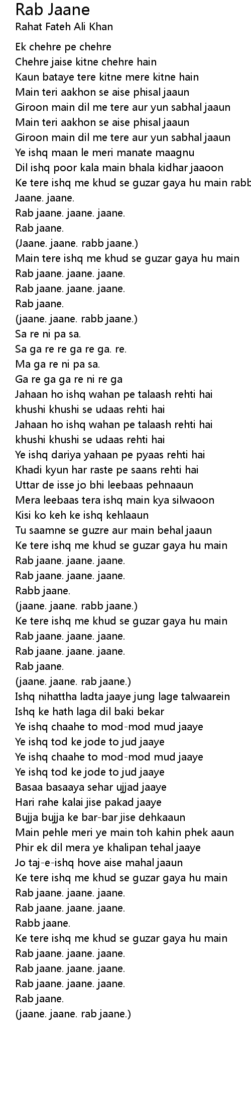 Ke tere ishq me khud se guzar gaya hu main rabb jaane. |