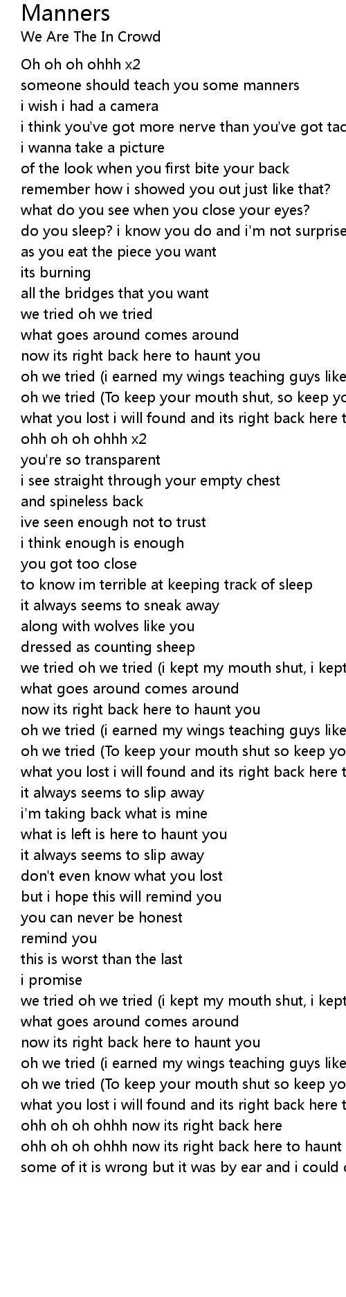Manners 歌词