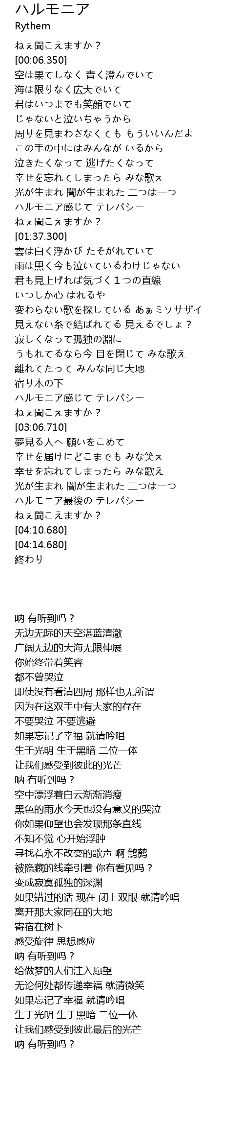 | [02:50.520] | ハルモニア感じて テレパシー |