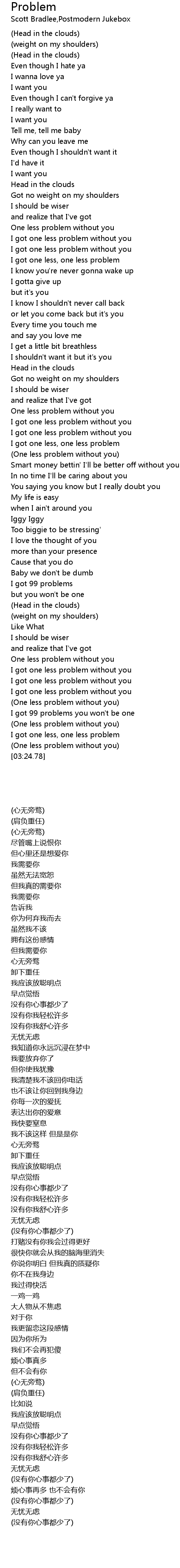 I got one less problem without you |