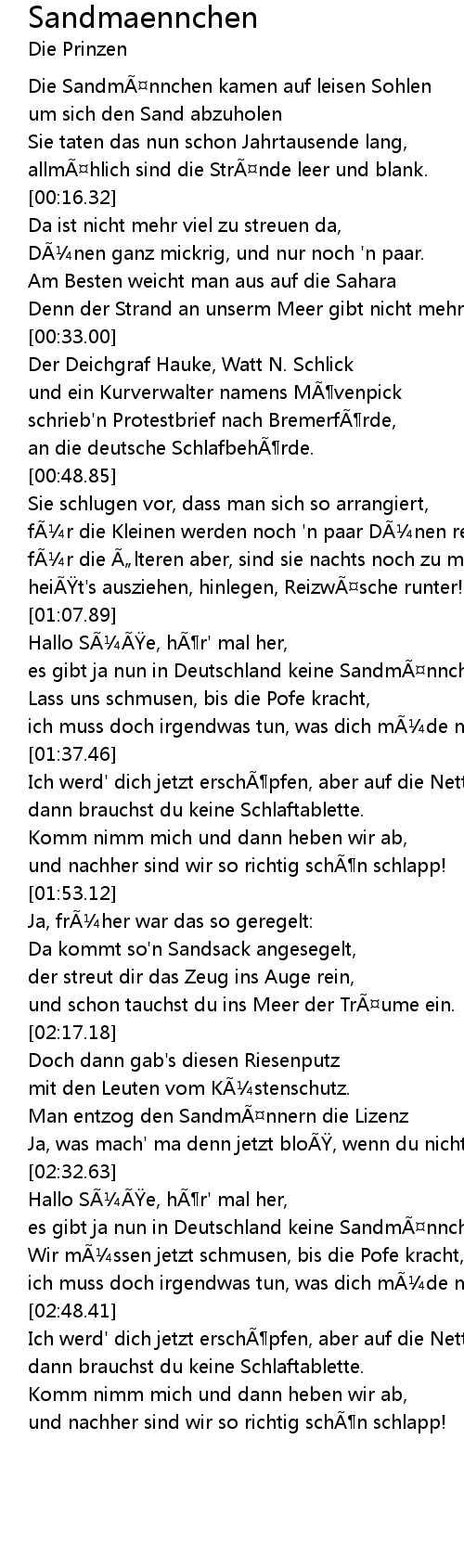 | [02:36.74] | es gibt ja nun in Deutschland keine Sandm nnchen mehr |