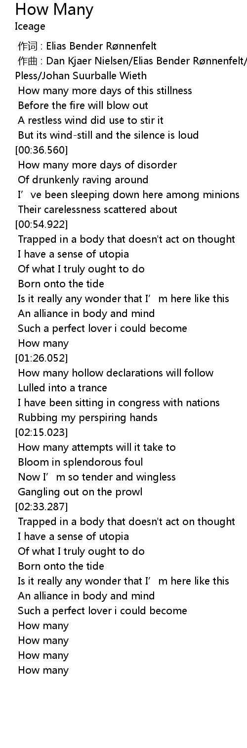 | [00:00.000] | 作词 : Elias Bender Rønnenfelt |