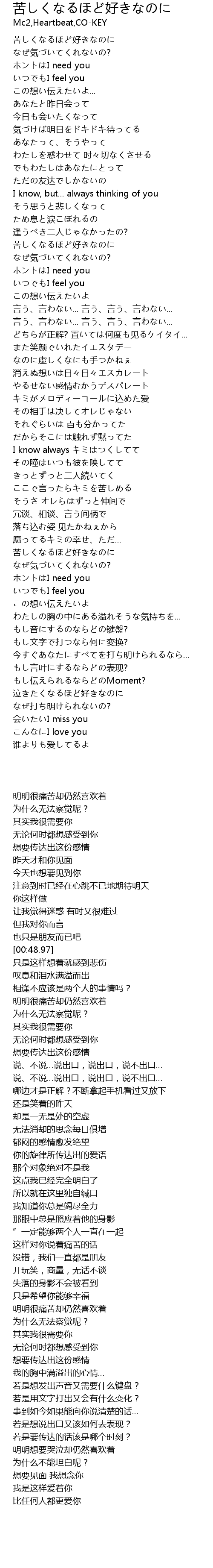 | [00:01.48] | 苦しくなるほど好きなのに |