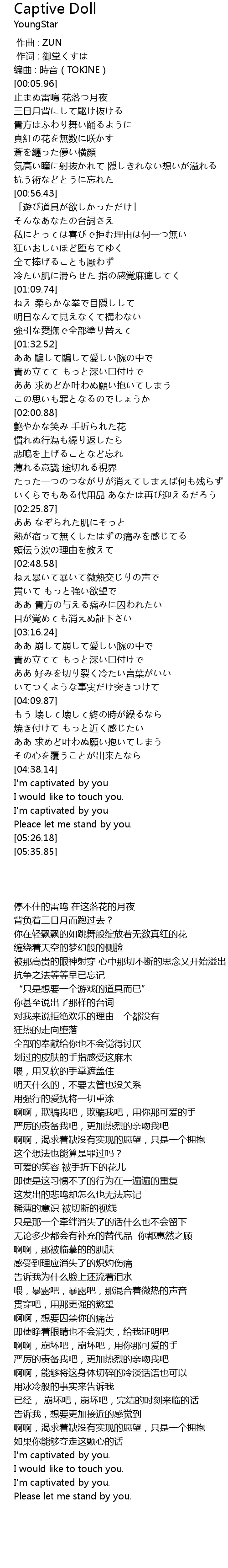 | [03:01.98] | ああ 貴方の与える痛みに囚われたい |