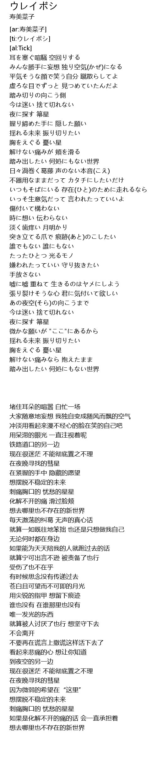 | [01:07.70] | 刺痛胸口的 忧愁的星星 |