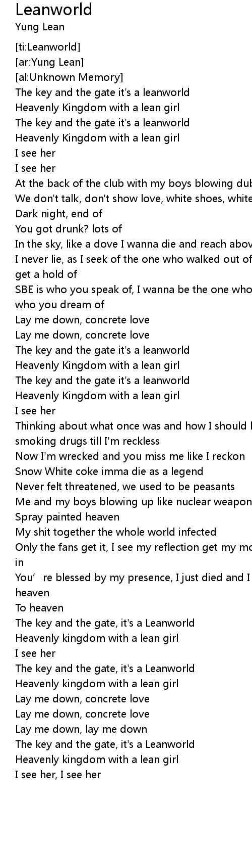 | [00:45.50] | Heavenly Kingdom with a lean girl |