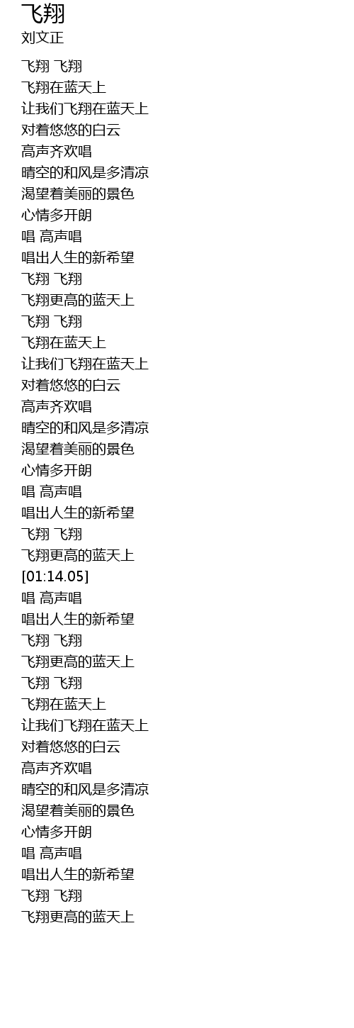 | [01:45.57] | fēi xiáng zài lán tiān shàng |