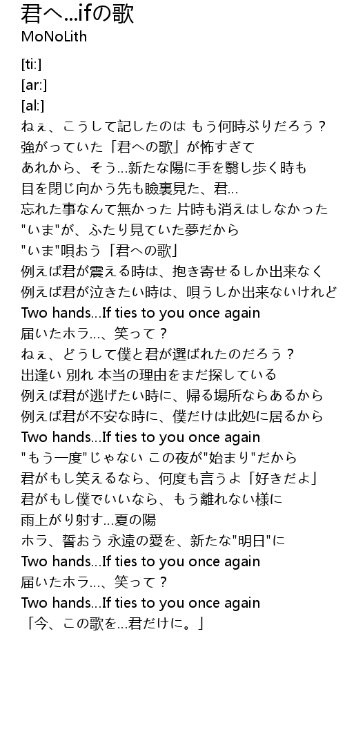 | [00:50.25] | 強がっていた「君への歌」が怖すぎて |