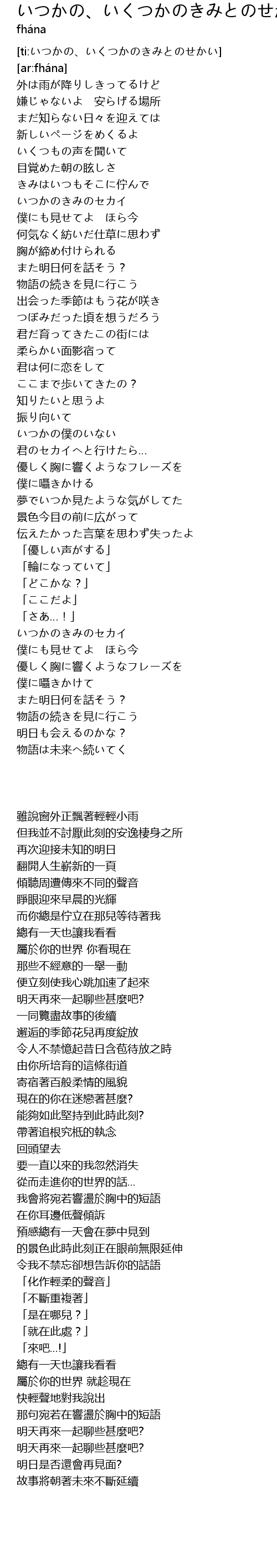 | [ti:いつかの、いくつかのきみとのせかい] | |