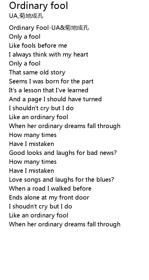 | Ordinary FoolUA jú dì chéng kǒng | |