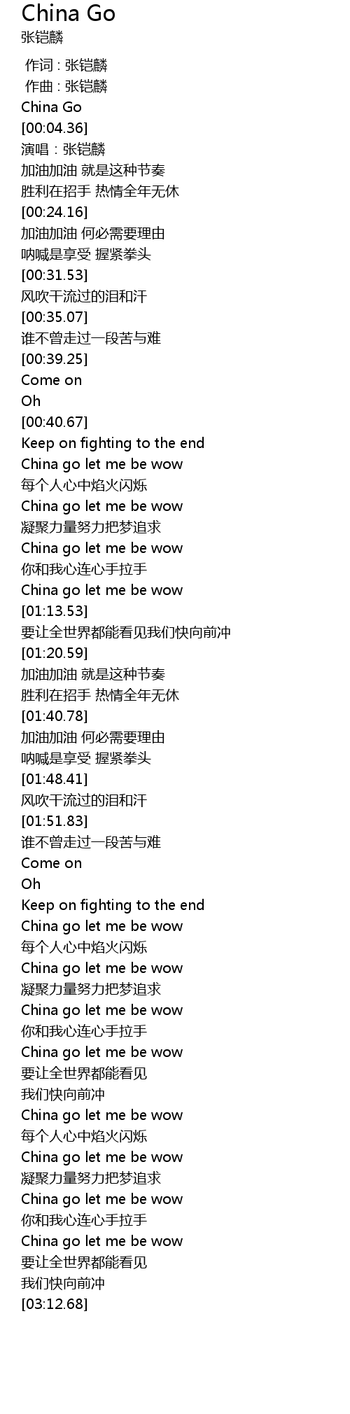| [02:11.48] | China go let me be wow |