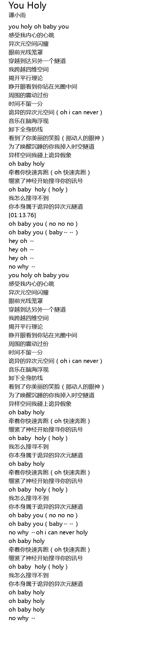 | [01:31.77] | you holy oh baby you |